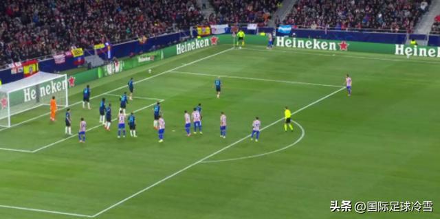 但当时的国米在定位球防守时采取了“区域防守”,在小禁区线附近囤积了6-7名防守球员镇守要冲。没有选择“盯人防守”,以至于在罚球之前,如希门尼斯这样的危险分子,无人贴身干扰。